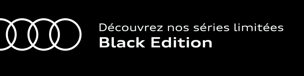 Élégantes, dynamiques et haut de gamme, les séries limitées Audi Black Edition concentrent toute l’excellence Audi. Disponibles actuellement pour les modèles emblématiques A1 Sportback, Q2, Q3, Q3 Sportback, A4 Avant, Q5 et Q5 Sportback. Avec son extérieur S line et son pack esthétique noir plus, cette édition limitée est une invitation à vous distinguer à chaque trajet.