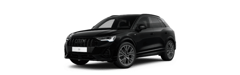 Exemple pour une Audi Q3 35 TFSI S tronic black édition. Options incluses dans les loyers : 2 ans de garantie additionnelle, peinture métallisée