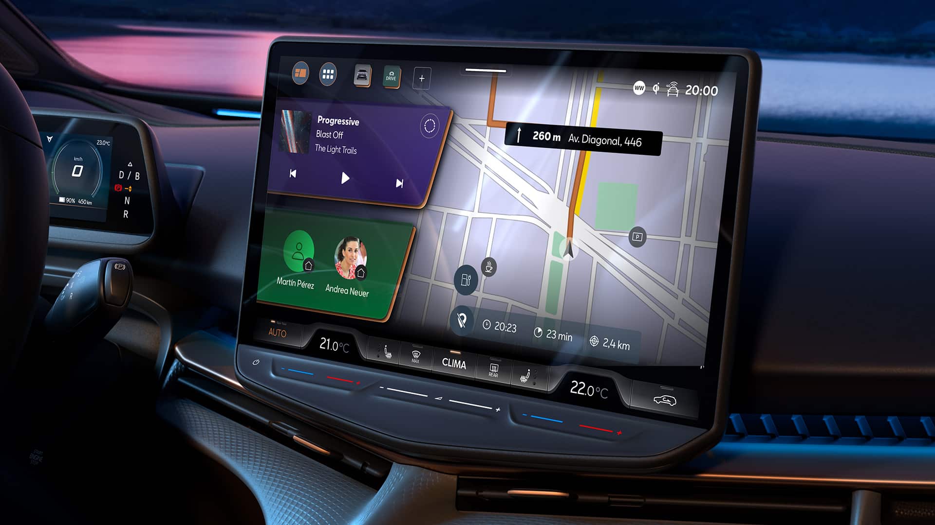 À l’intérieur, un écran tactile de 15 pouces intègre les dernières technologies d’infodivertissement, tandis que des matériaux durables, tels que des composants d’origine végétale et des plastiques recyclés, soulignent l’engagement écologique du véhicule.