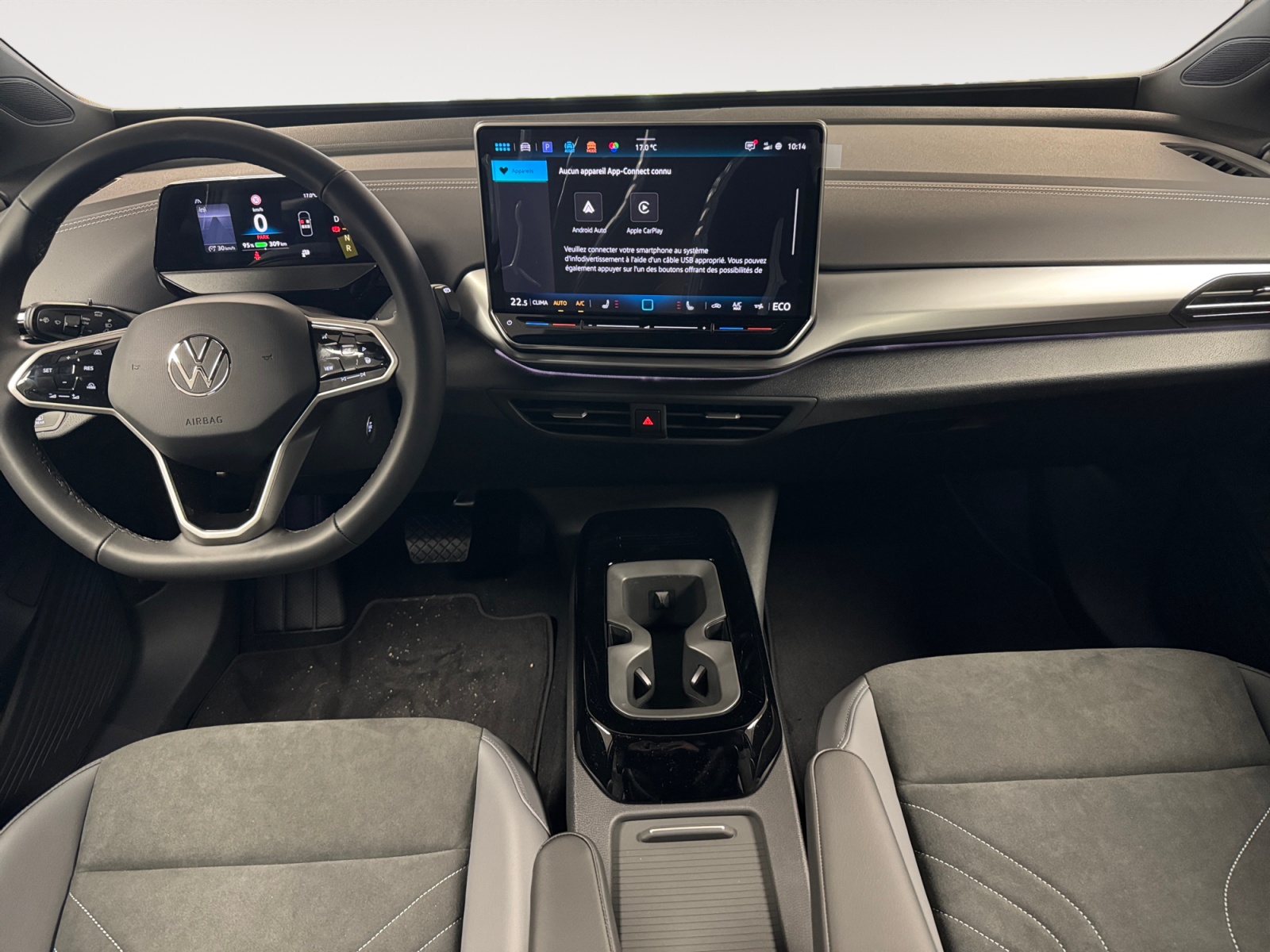 Sélecteur de vitesse situé à droite derrière le volant avec frein de stationnement électronique Il dispose d'une marche AV (D/B), du neutre (N) et d'une marche AR (R). En position (D), la récupération d'énergie au freinage est en mode normal. En position (B), le système d'aide à l'éco-conduite est activé et la récupération d'énergie est plus élevée