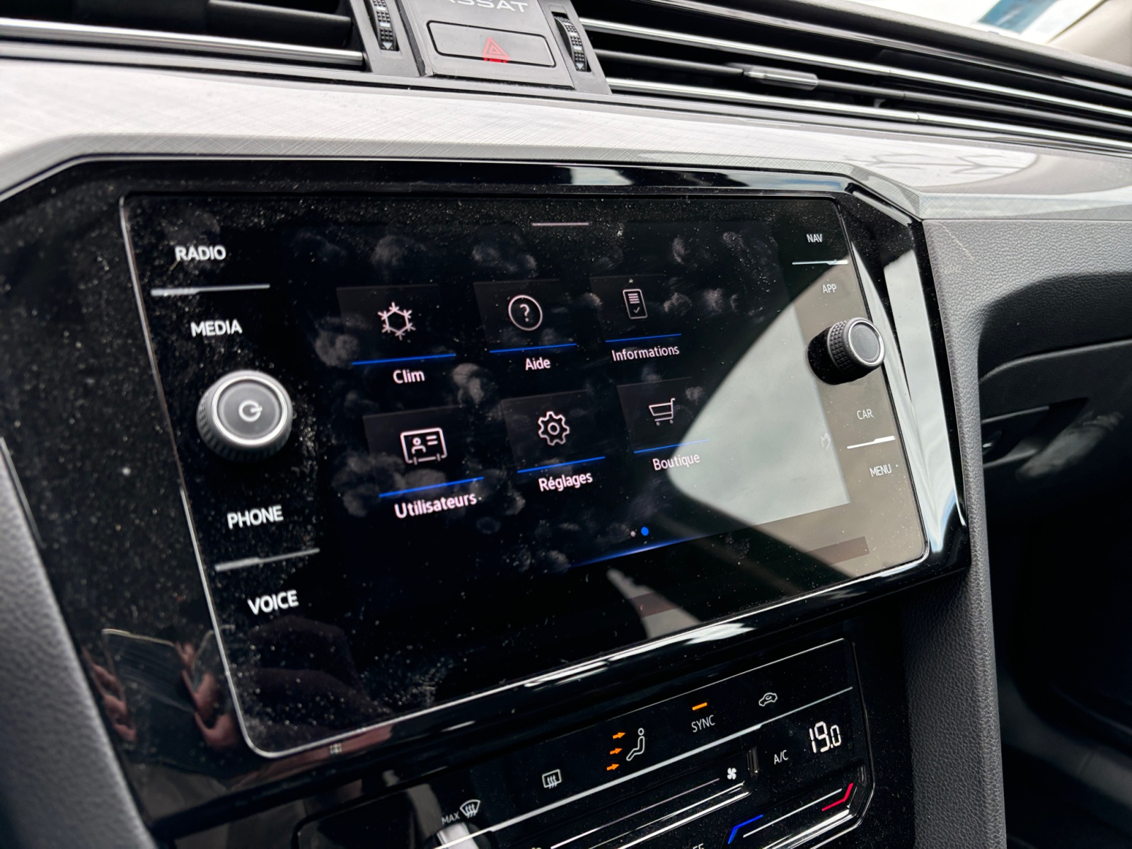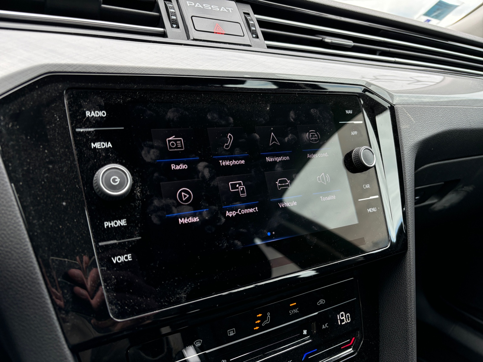 Cerclage chromé des diffuseurs dair AV et de la commande rotative déclairage