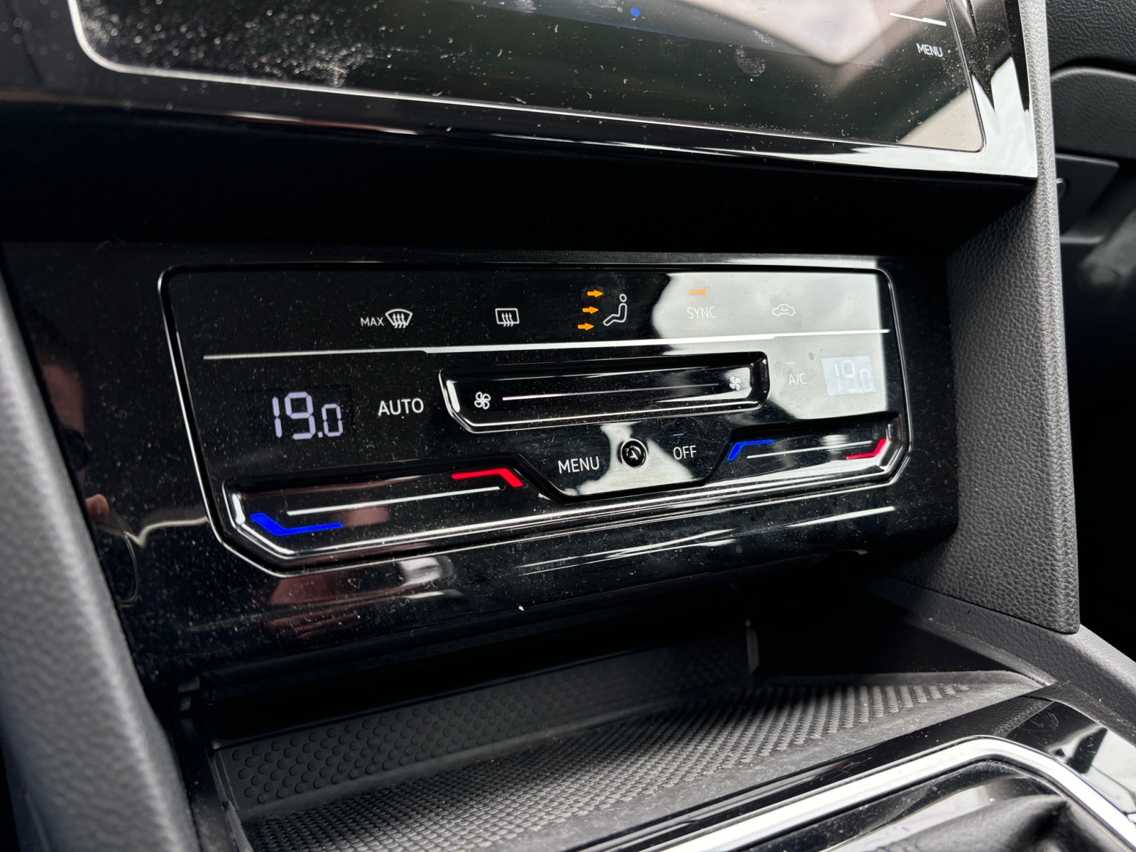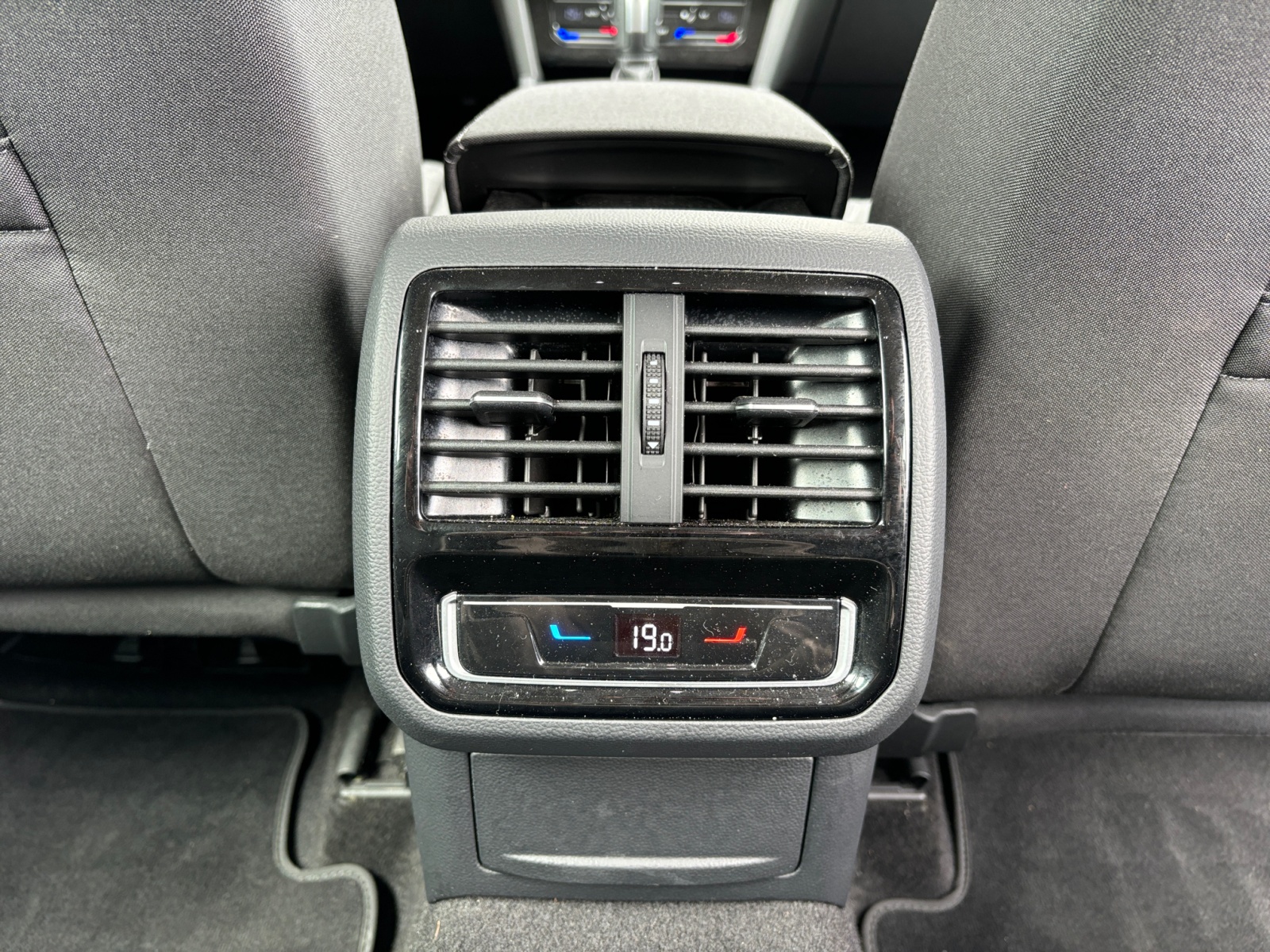 Accoudoir central AV réglable en hauteur et en profondeur avec compartiment de rangement, avec entourage des aérateurs chromées AR