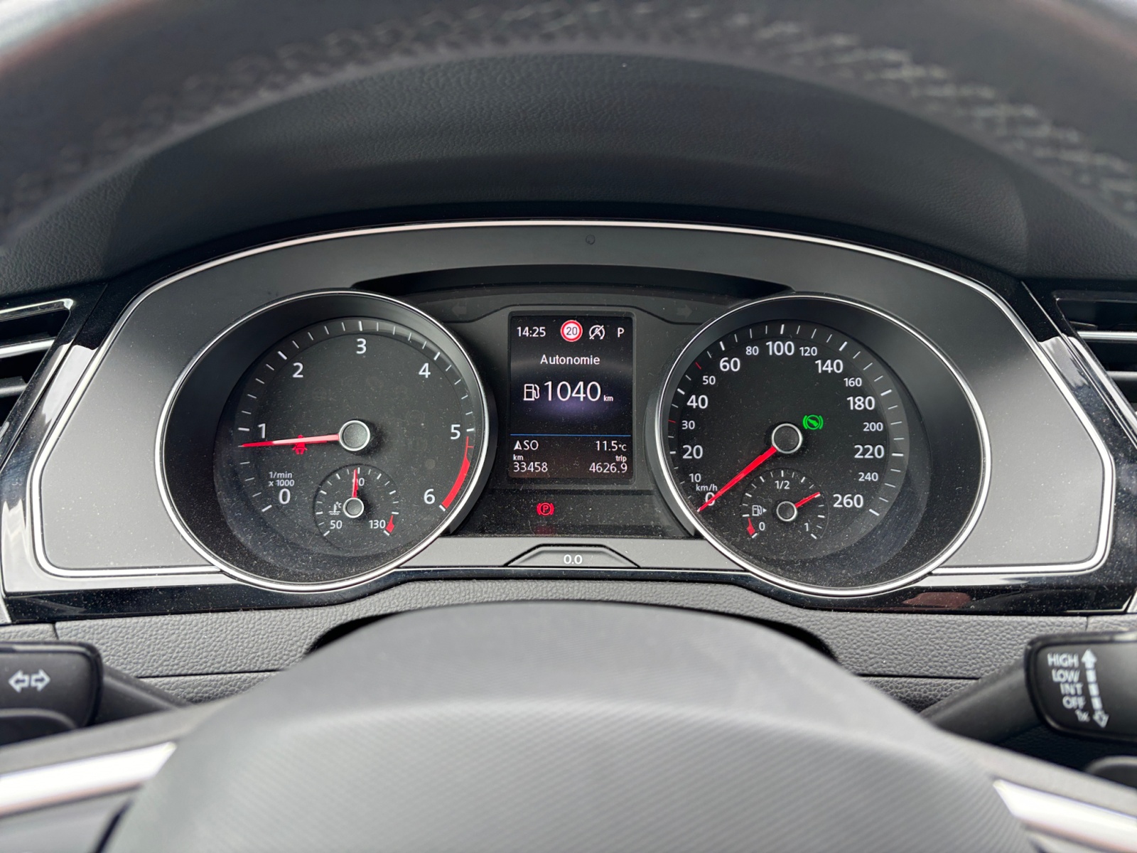 Eclairage blanc sur les instruments avec aiguilles rouges réglable en intensité