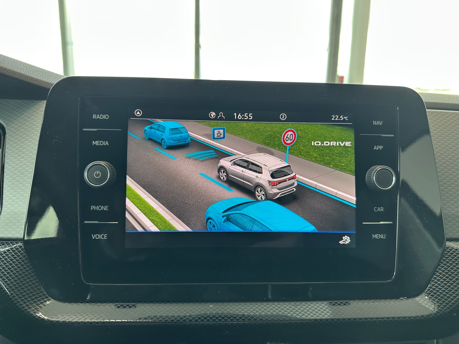 Lane Assist: Assistant de maintien de trajectoire qui corrige, dans la limite du système, le mouvement du volant avant que le véhicule dépasse involontairement la bande de roulement. Système actif à partir de 65 km/h