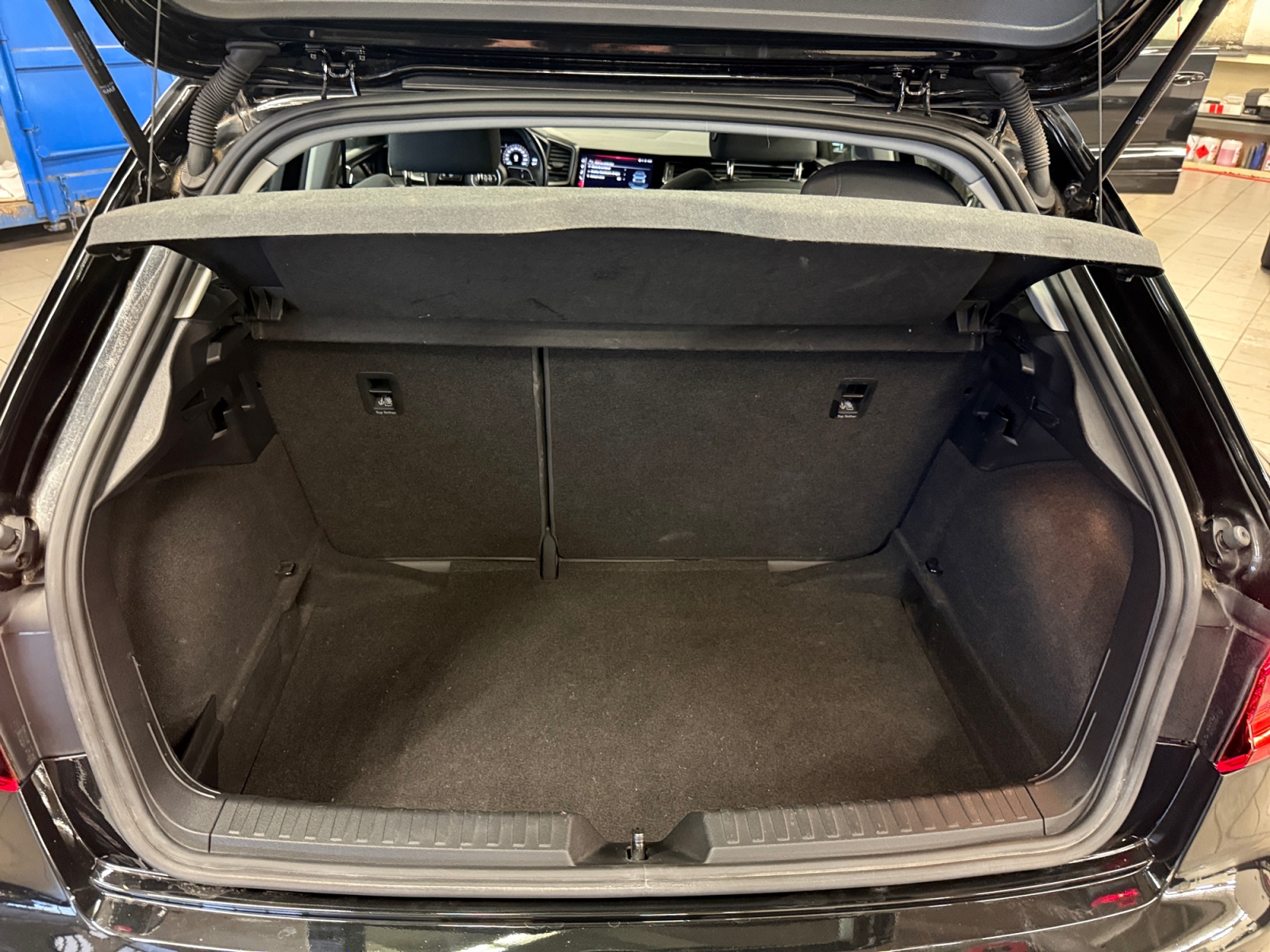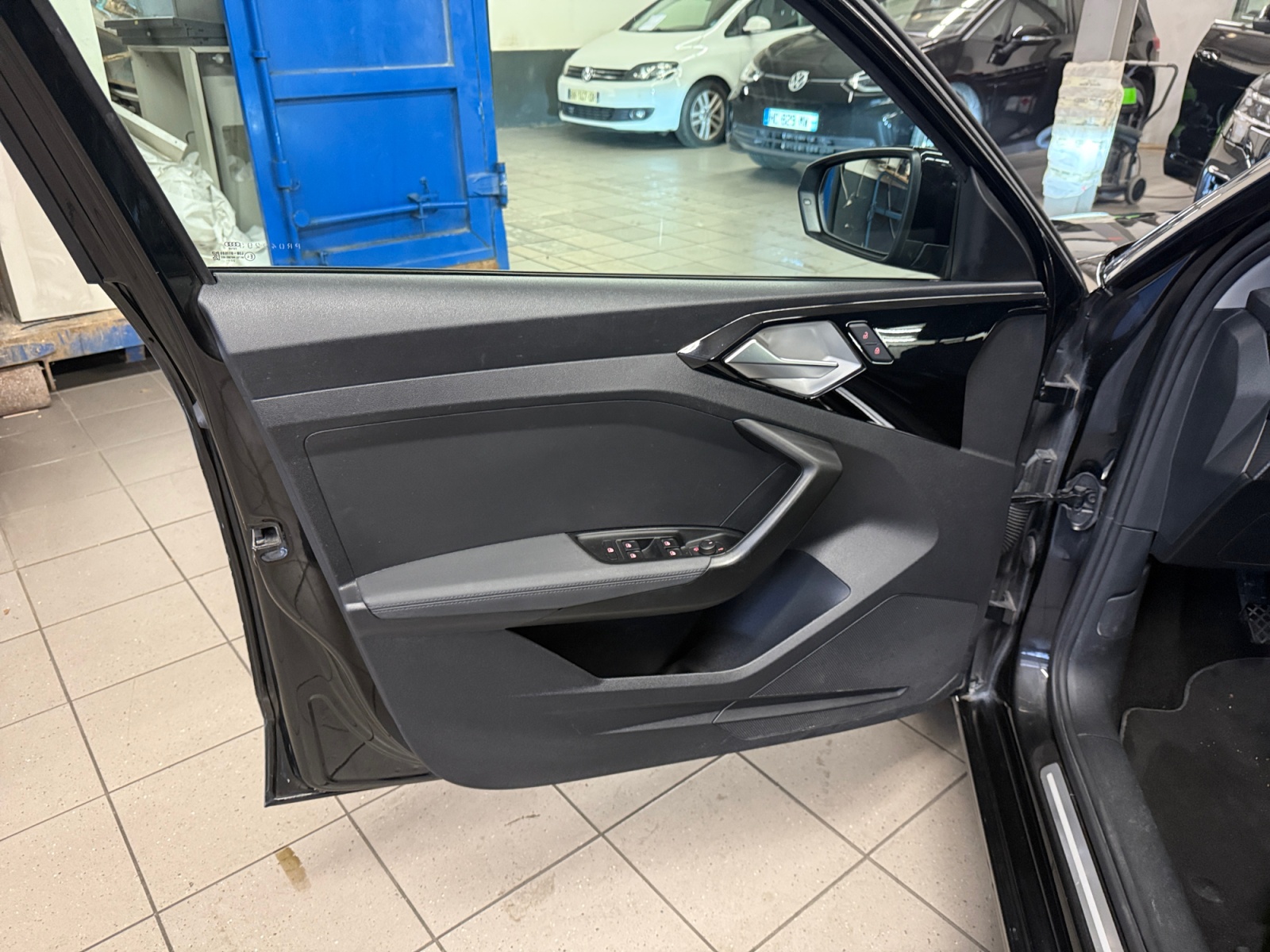 Applications décoratives étendues sur le tableau de bord façon verre en noir, de l'écran couleur MMI touch jusqu'aux triangles de portières AV façon verre en noir