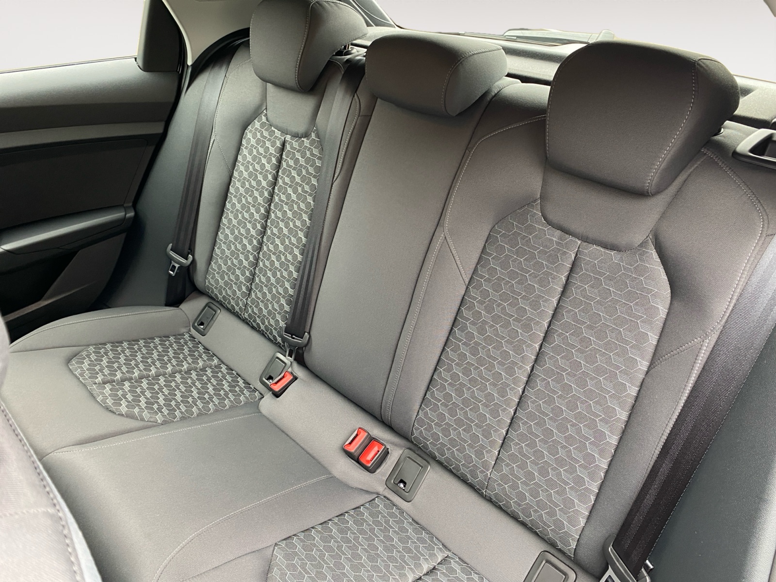 Applications décoratives étendues sur le tableau de bord façon verre en noir, de l'écran couleur MMI touch jusqu'aux triangles de portières AV façon verre en noir