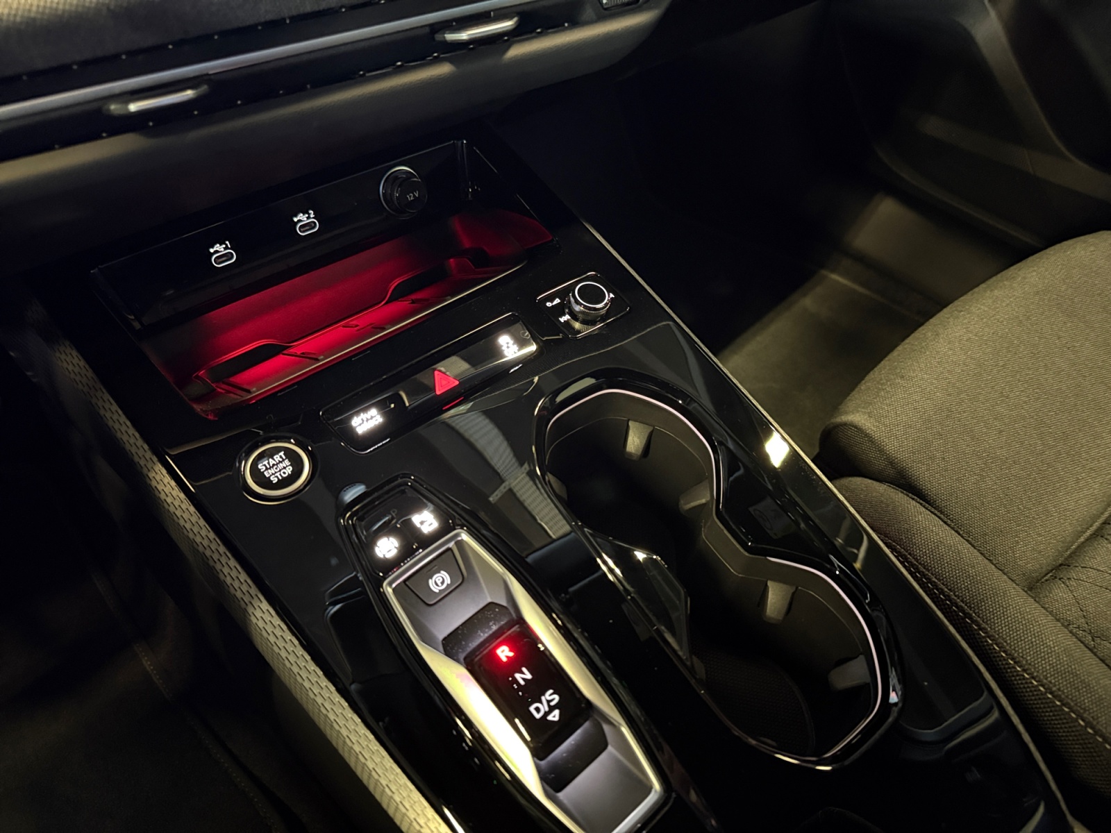 Eléments d'équipement intérieur en haut et en bas avec couture contrastée
