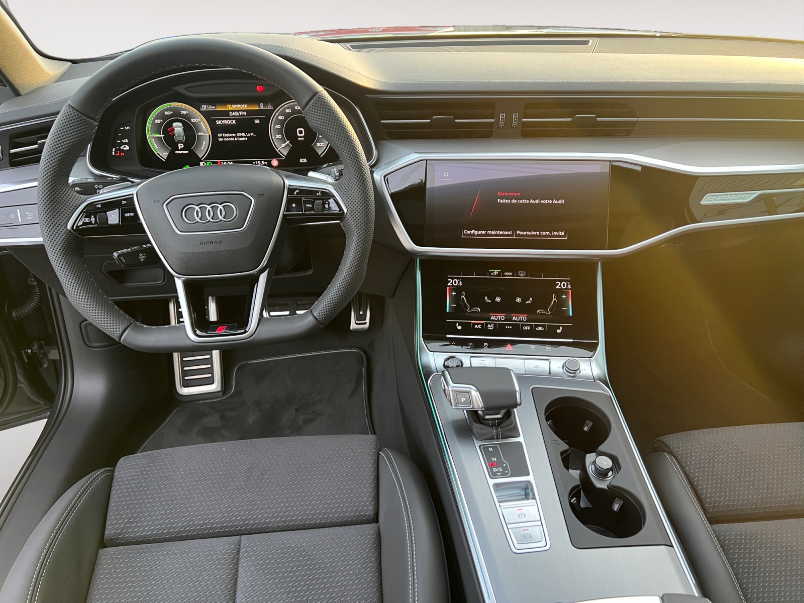 Navigation MMI plus avec MMI touch response Afichage sur lécran couleur 10,1" avec virtual Cockpit 12,3", Affichage suppl. de la carte de navigation de direction sur le système dinformation du conducteur, Mise à jour des cartes par téléchargement des données, Affichage de cartes 3D comportant de nombreuses curiosités et modelés urbains, Assistant de guidage personnel et defficacité, nformations routières en ligne, Recherche MMI intelligente avec saisie assistée, MMI touch response, Commande vocale dans un langage naturel