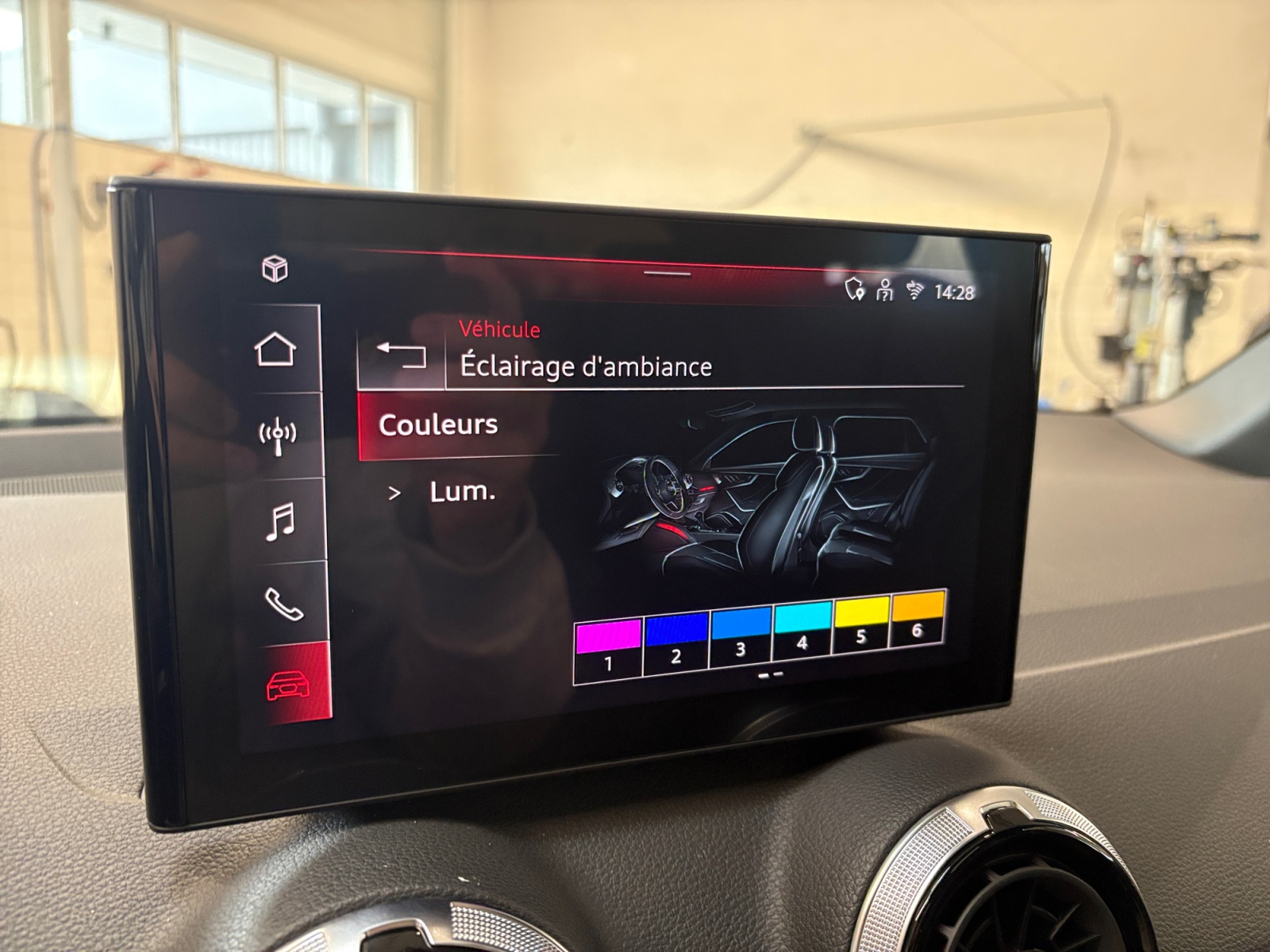 Rétroéclairage de couleur sur le tableau de bord et sur le repose-genoux de la console centrale