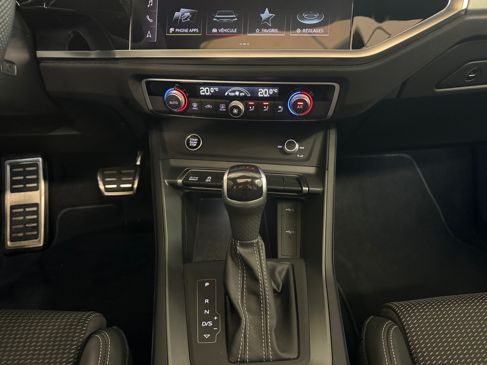 2 prises USB AR (type-C) et prise 12V dans la console centrale AR