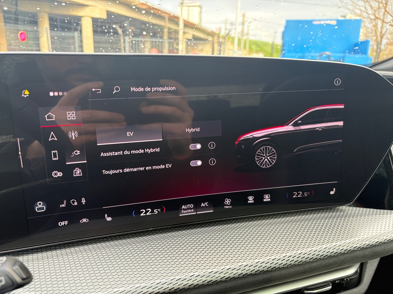 Climatisation stationnaire Les fonctions de climatisation peuvent être programmées ou activées facilement via le MMI touch dans le véhicule ou peuvent être activées à laide de lapplication myAudi. La climatisation stationnaire fonctionne indépendamment du fait que la voiture soit en charge ou non, à condition que la batterie haute tension ait un état de charge suffisamment élevé.