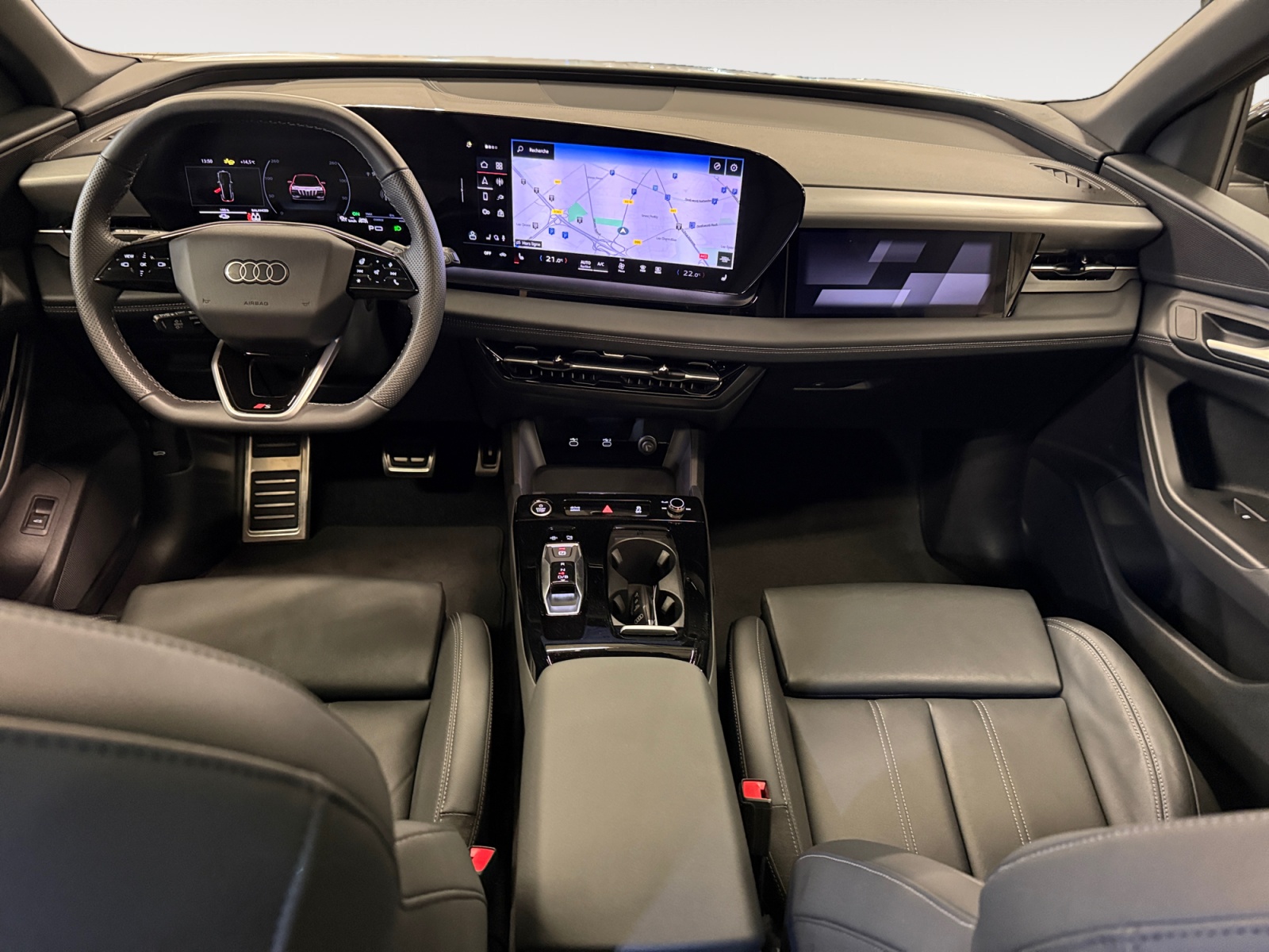 Partie supérieure du tableau de bord en Noir avec couture contrastée