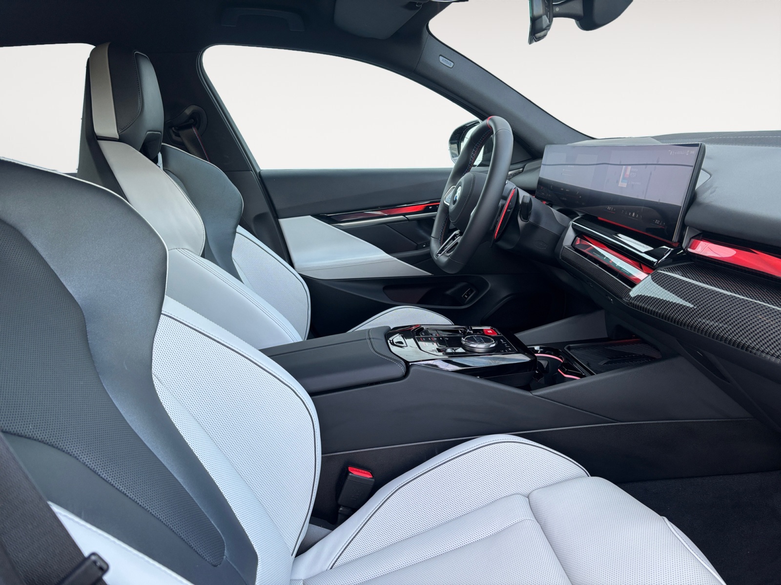 BMW Live Cockpit Navigation Professional avec Affichage tête Haute et Réalité Augmentée - BMW Curved Display : combinaison de 2 écrans incurvés hautes résolutions dont un au niveau du tableau de bord de 12,3 "et un écran central tactile de 14,9", - Système d'exploitation BMW OS 8.5 avec widgets variables et configurables qui affichent des informations en temps réel, - Affichage tête haute HUD en couleur - Guidage intéractif avec "Réalité Augmentée - BMW Maps