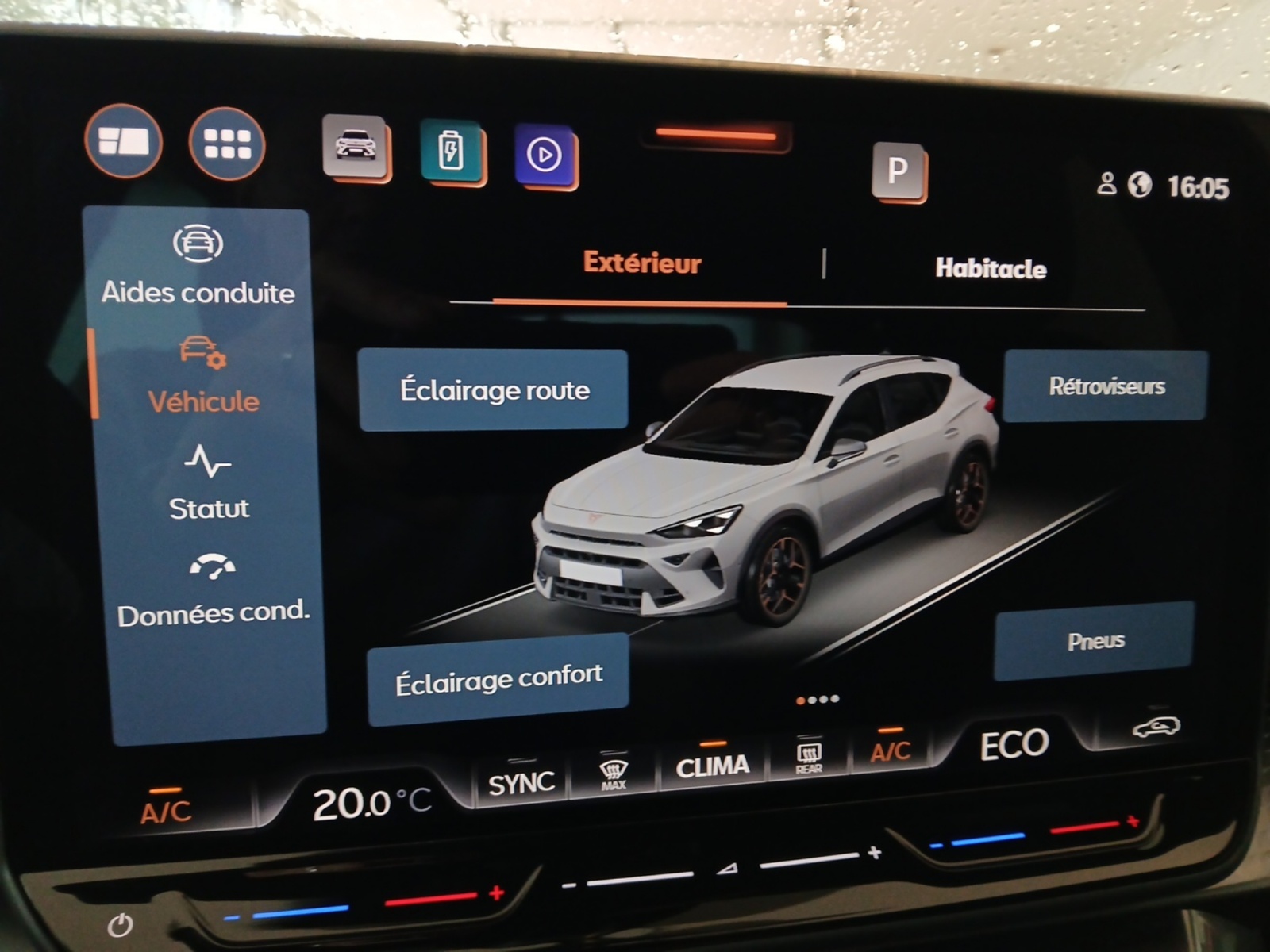 Eclairage de bienvenue avec projection du logo CUPRA au sol et éclairage d'accompagnement