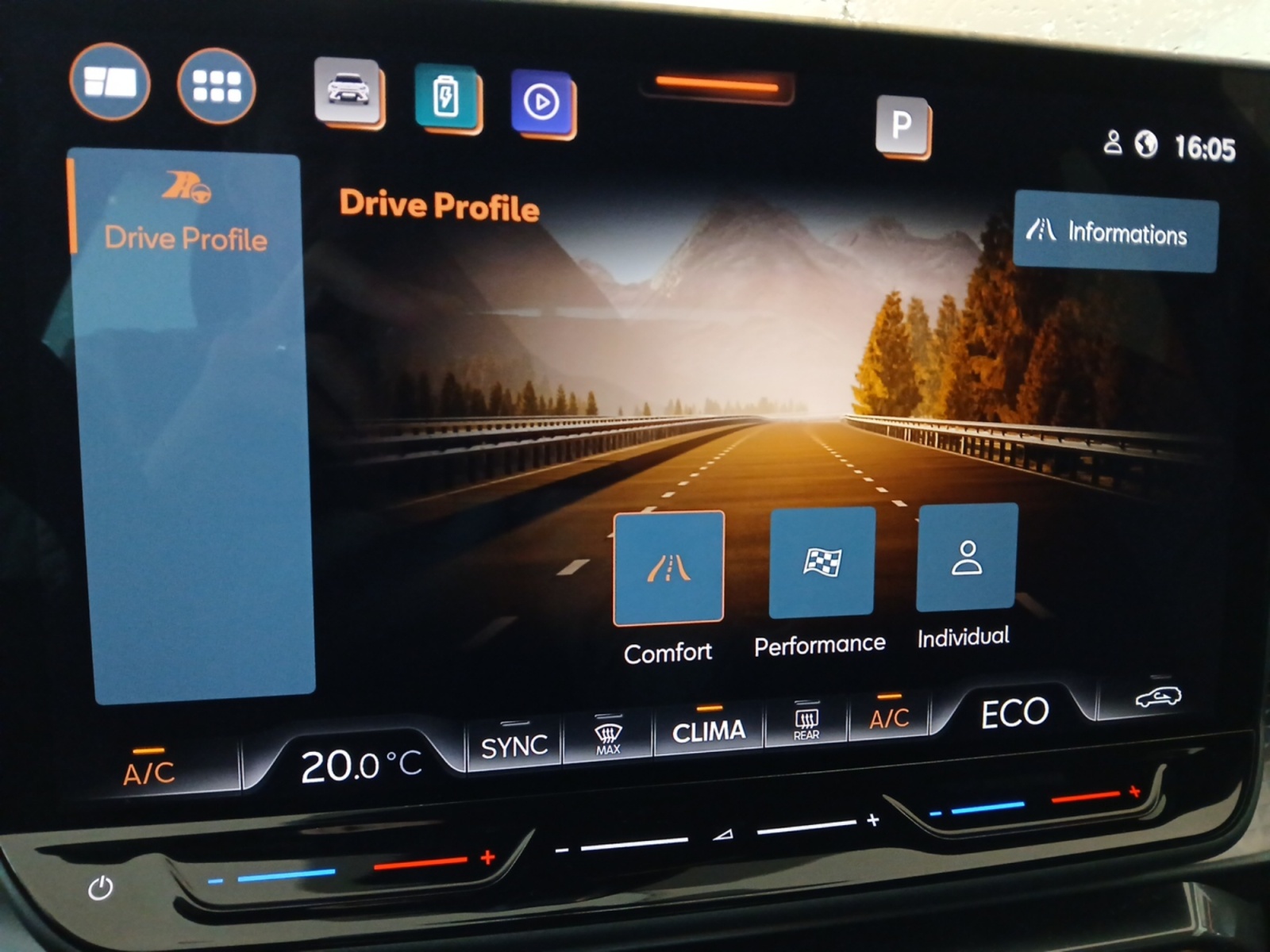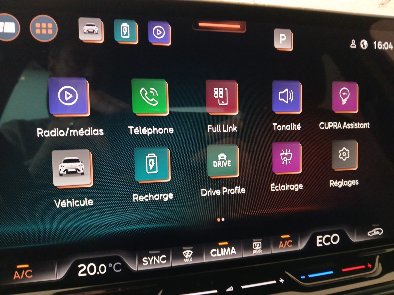 Système d'info-divertissement avec écran tactile HD 12,9" et touches de commandes tactiles rétro- éclairées