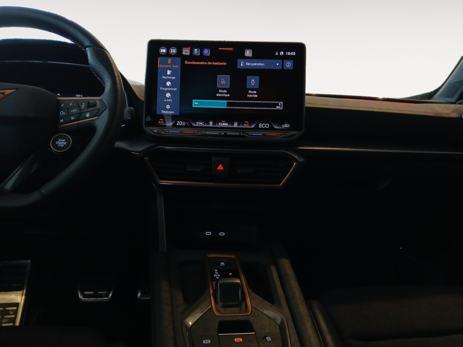 Volant Supersports CUPRA en cuir avec boutons satellites, chauffant, avec palettes de changement de rapport