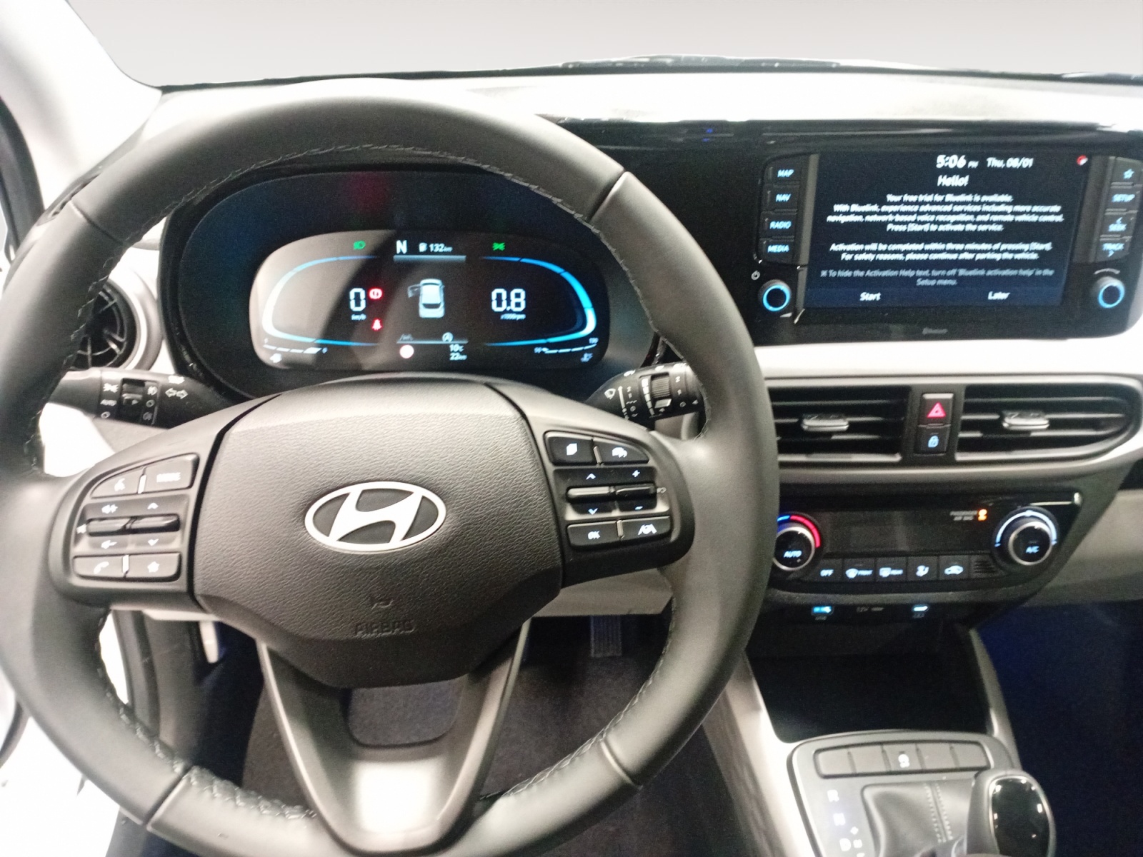 Services connectés BlueLink avec carte SIM incluse: Transmission de destination au système de navigation à distance - Géolocalisation du véhicule - Historique des trajets - Statut du véhicule (portes, moteur, ventilation) - Diagnostic Services Bluelink PRO offerts pendant 6 mois et services Bluelink LITE offerts pendant 10 ans après la date de mise en circulation du véhicule. Les fonctionnalités à distance s'effectuent via l'application depuis un téléphone compatible, hors frais de connexion.