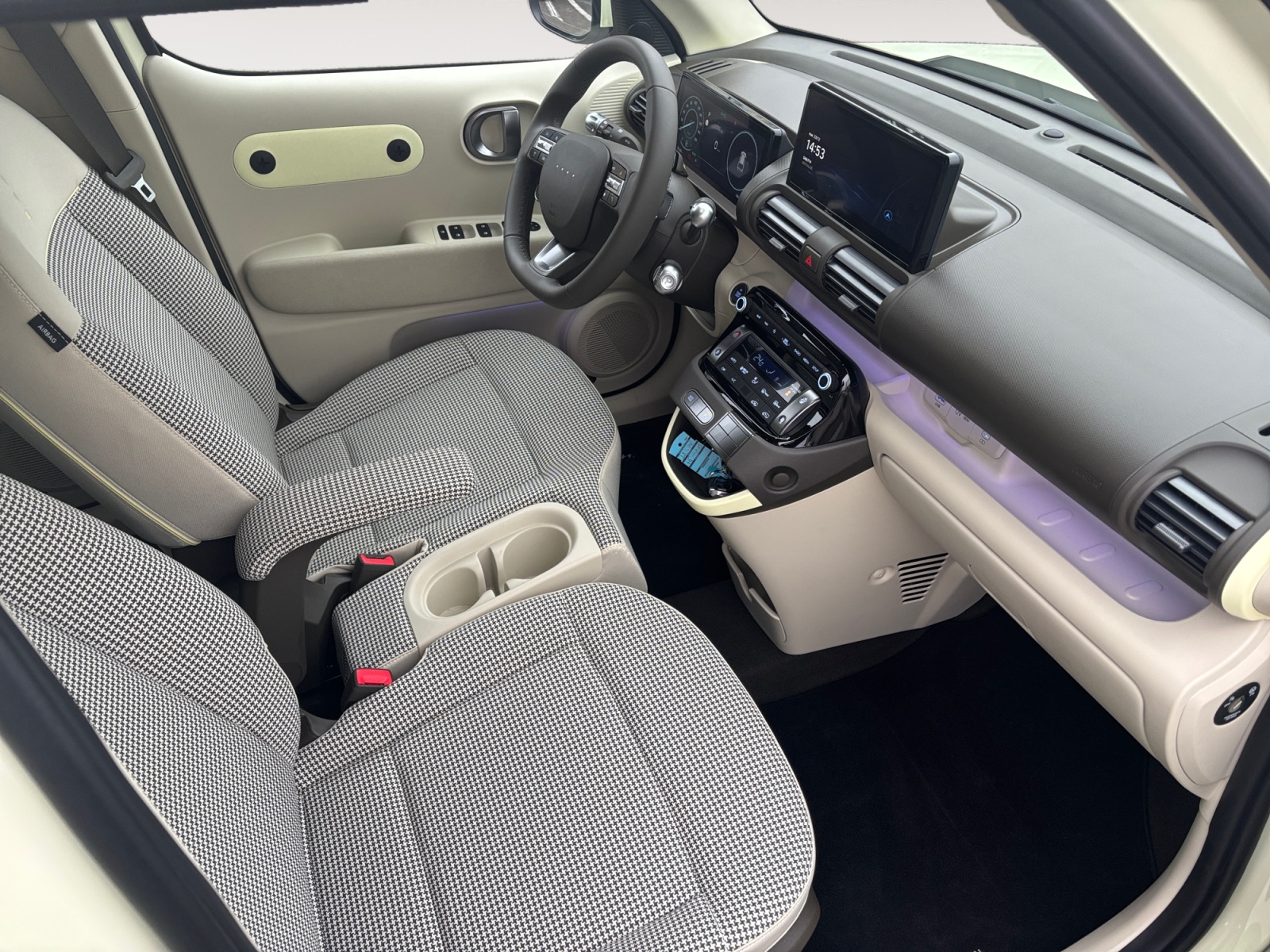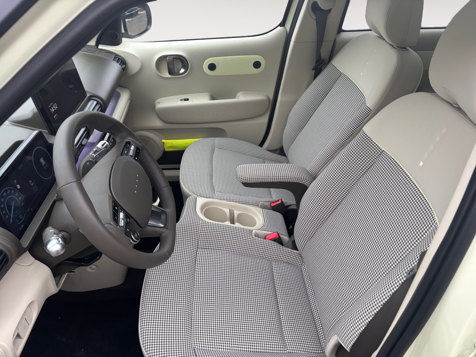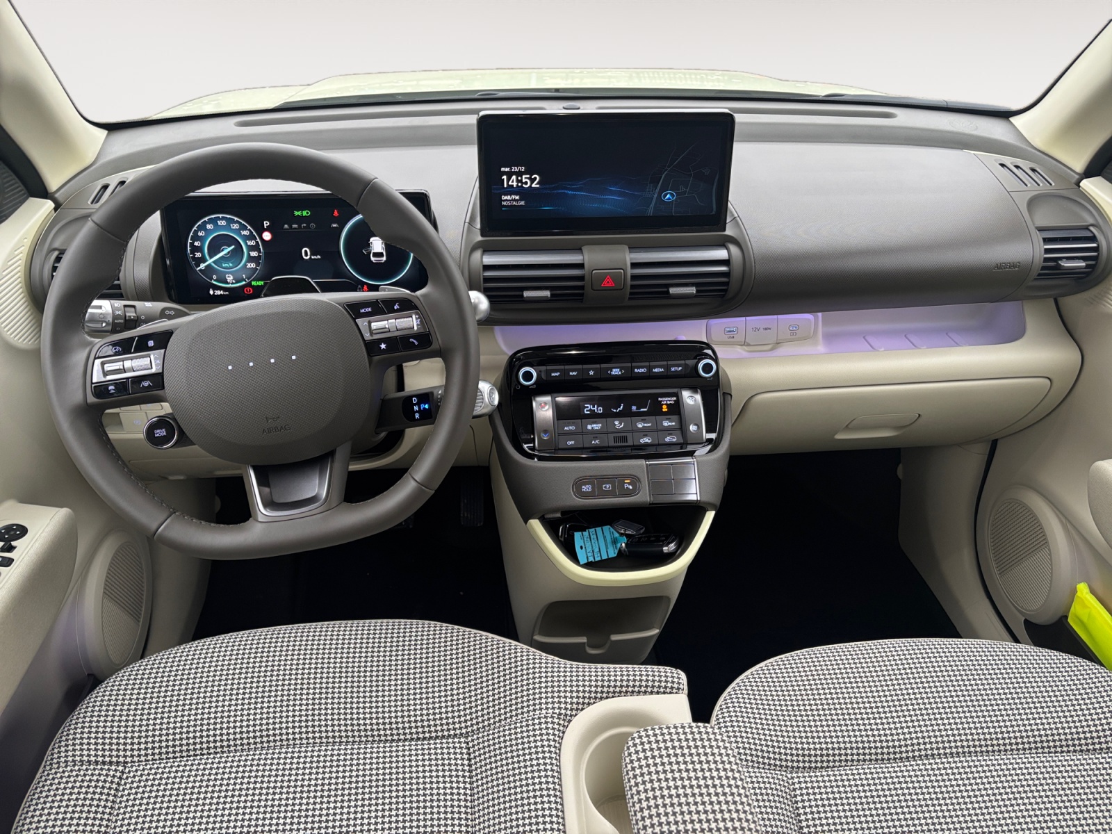 Intérieur néo-rétro beige avec sellerie à motif pied-de-poule