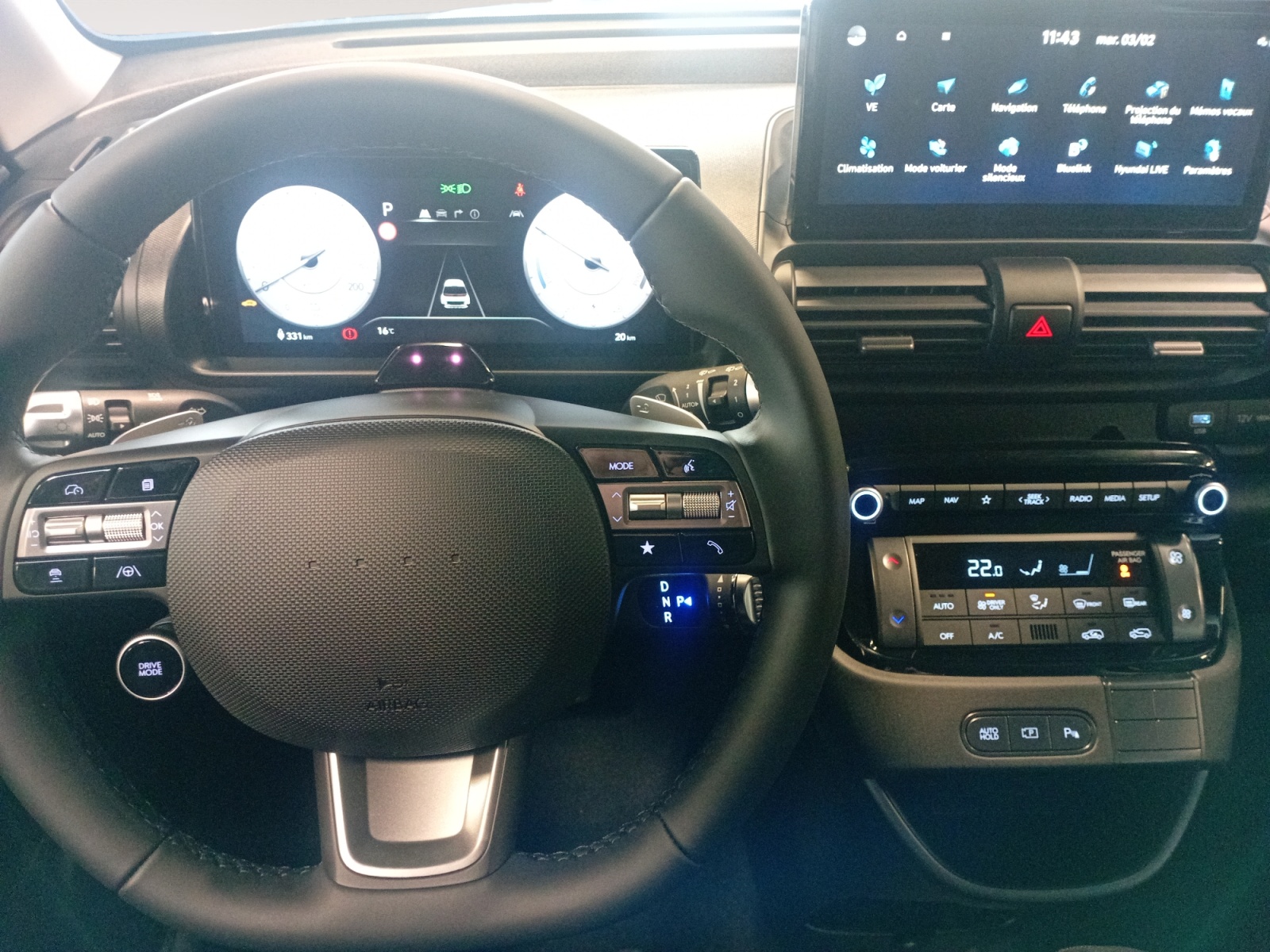 Services connectés BlueLink avec carte SIM incluse - Programmation à distance de la charge de la batterie et de la ventilation - Transmission de destination au système de navigation à distance - Géolocalisation du véhicule - Historique des trajets - Statut du véhicule (portes, moteur, ventilation) - Diagnostic