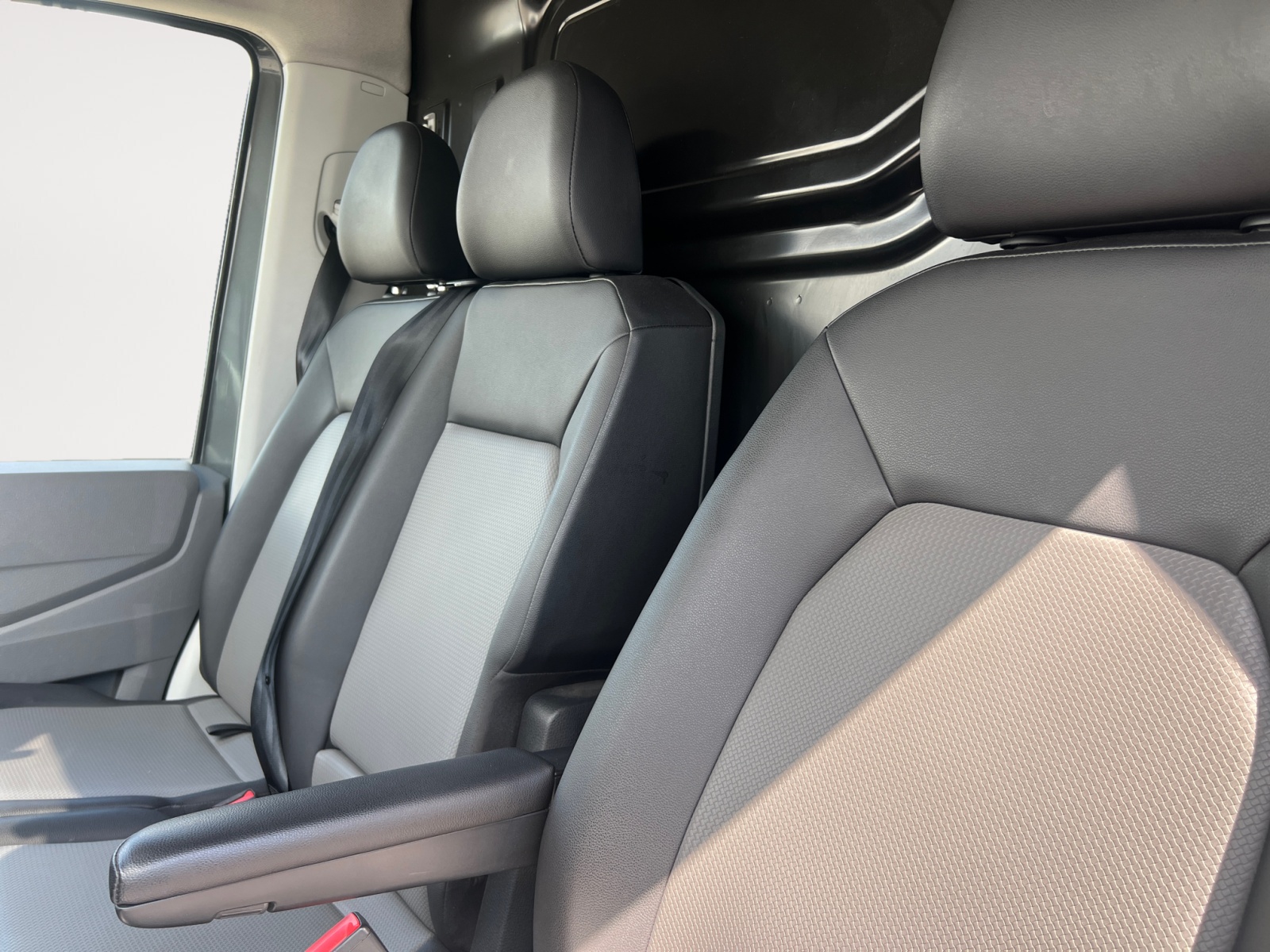 Banquette double pour 2 passagers avec grand espace de rangement sous les assises relevables séparément, d'une table au dos de la place du milieu (rabattable) avec porte-gobelet et porte-stylo