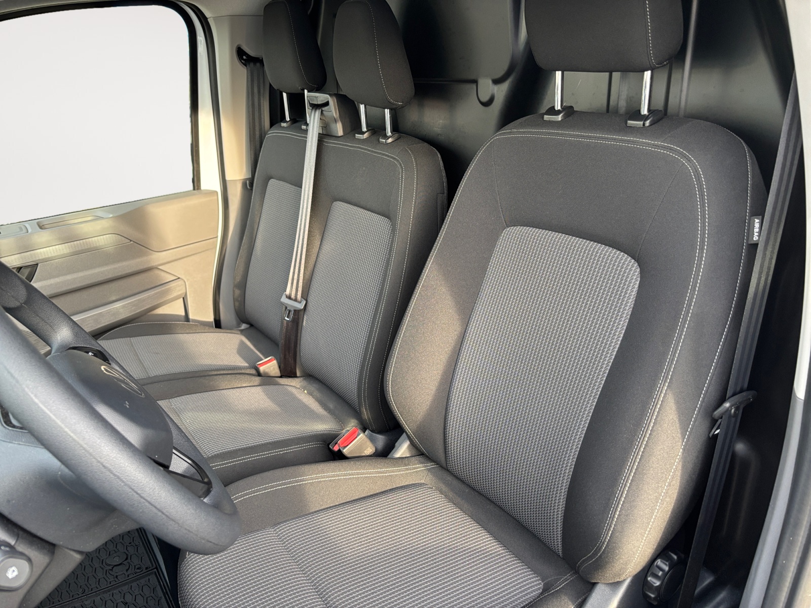 Pack sièges Appuie-tête 2 direction, réglable en hauteur, Appui lombaire 2 directions pour le siège du conducteur, Banquette double pour passagers avec trappe de chargement, Garniture de siège en tissus à rayures, Siège du conducteur 6 directions