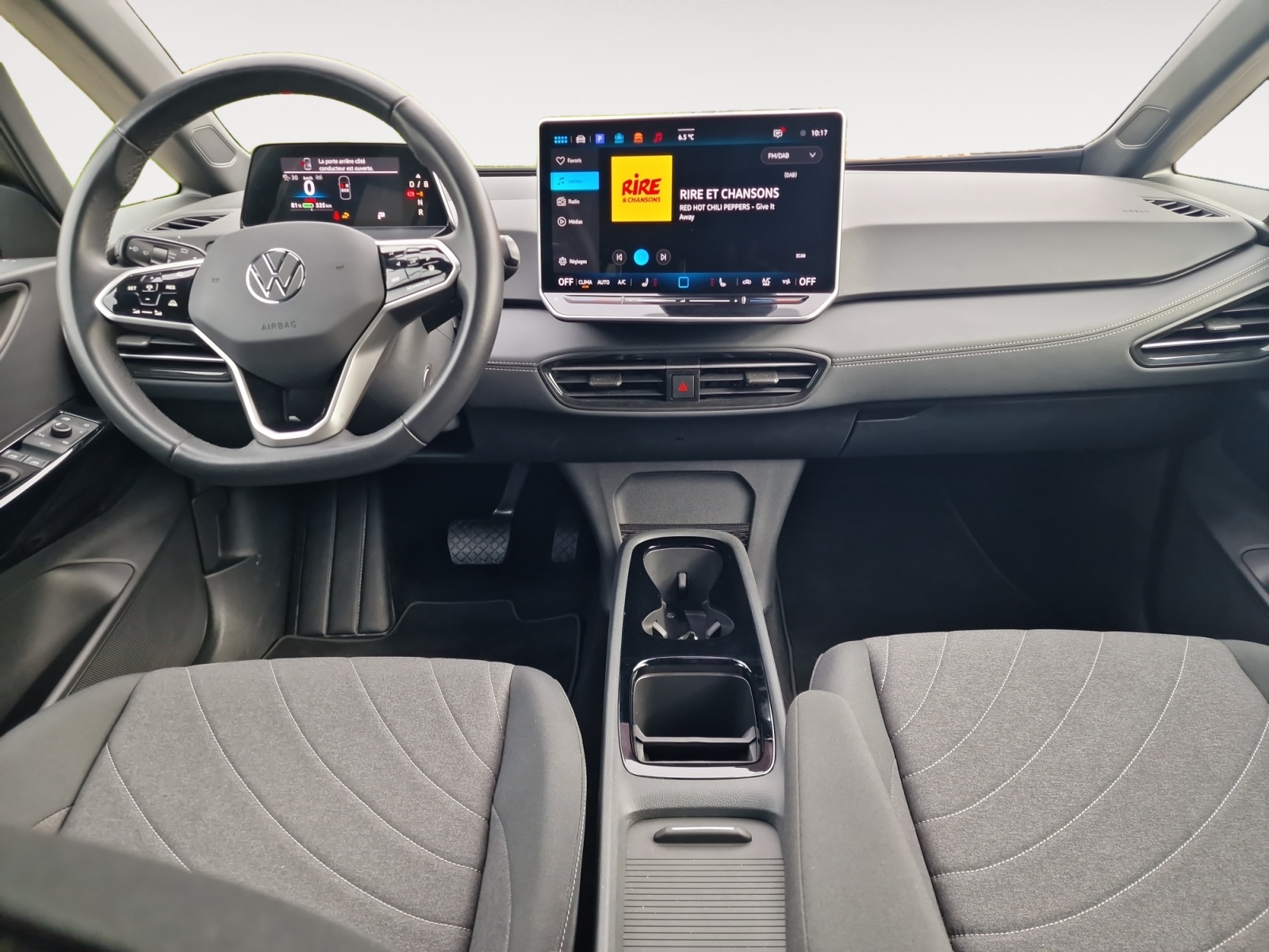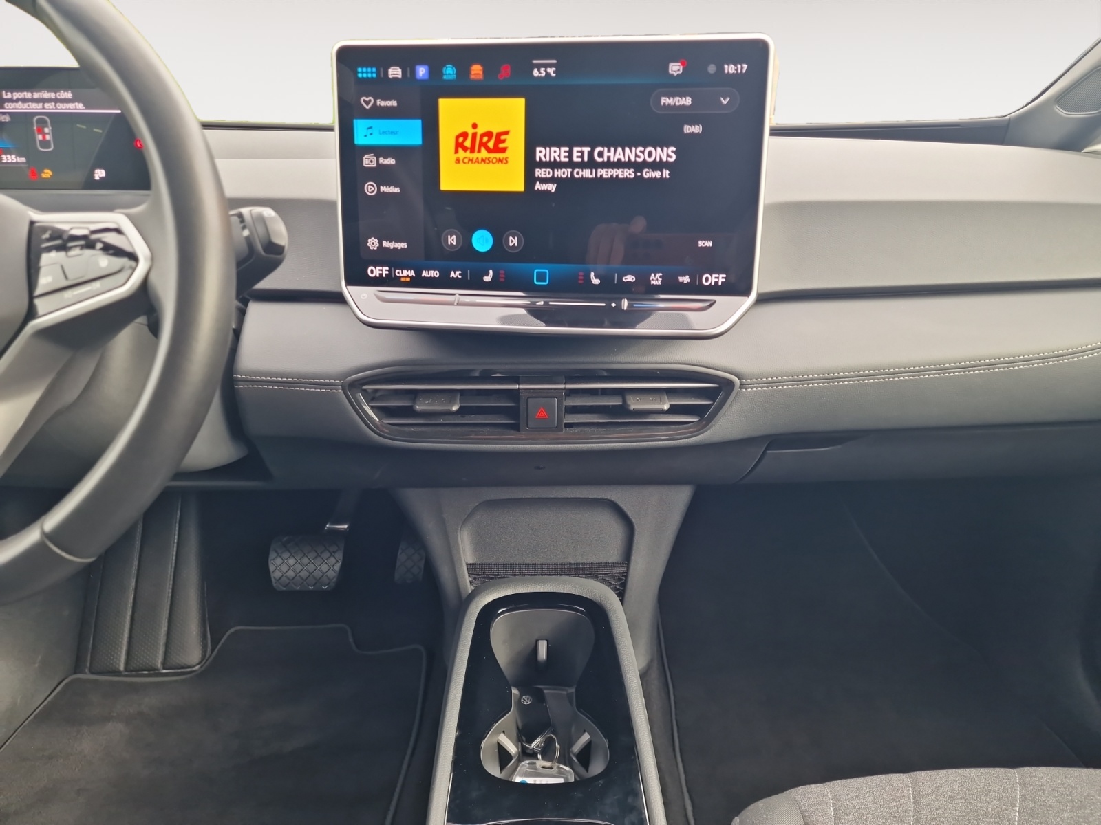 Sélecteur de vitesse situé à droite derrière le volant avec frein de stationnement électronique Il dispose d'une marche AV (D/B), du neutre (N) et d'une marche AR (R). En position (D), la récupération d'énergie au freinage est en mode normal. En position (B), le système d'aide à l'éco-conduite est activé et la récupération d'énergie est plus élevée