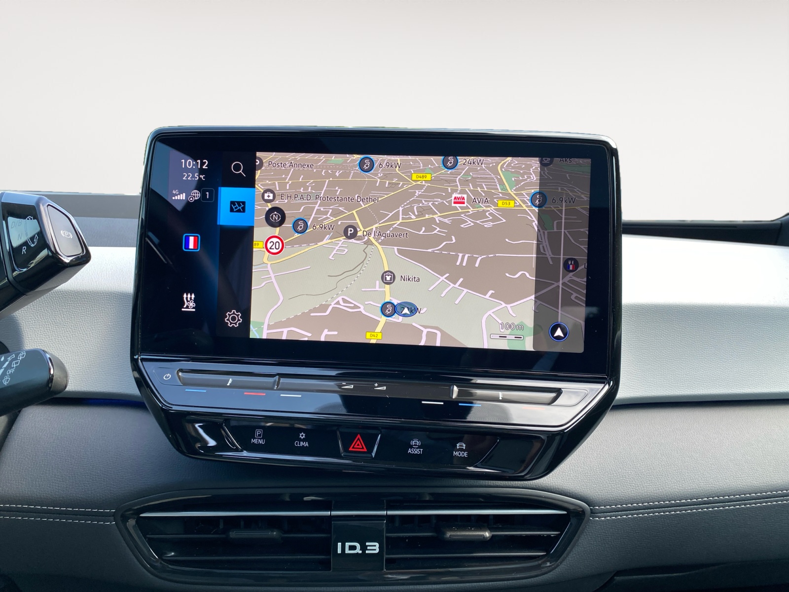 Sélecteur de vitesse situé à droite derrière le volant avec frein de stationnement électronique Il dispose d'une marche AV (D/B), du neutre (N) et d'une marche AR (R). En position (D), la récupération d'énergie au freinage est en mode normal. En position (B), le système d'aide à l'éco-conduite est activé et la récupération d'énergie est plus élevée