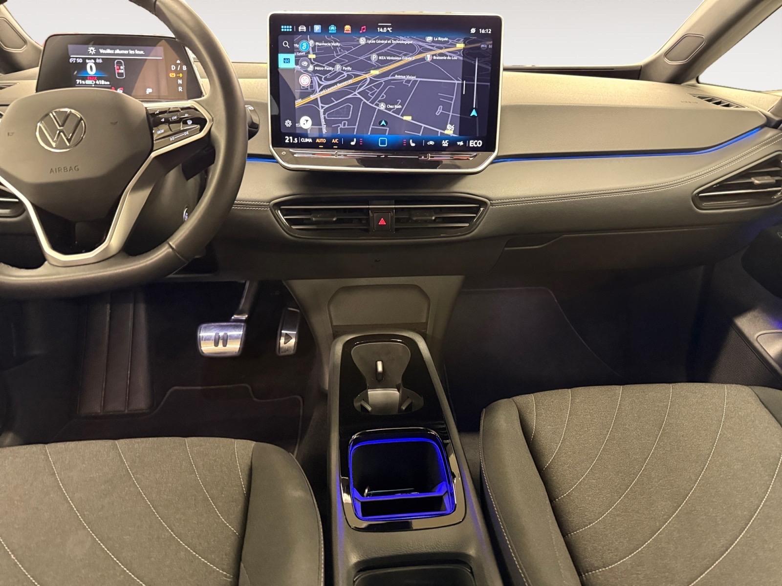 Console centrale rétroéclairée avec rangements, volet occultant, 2 porte-gobelets