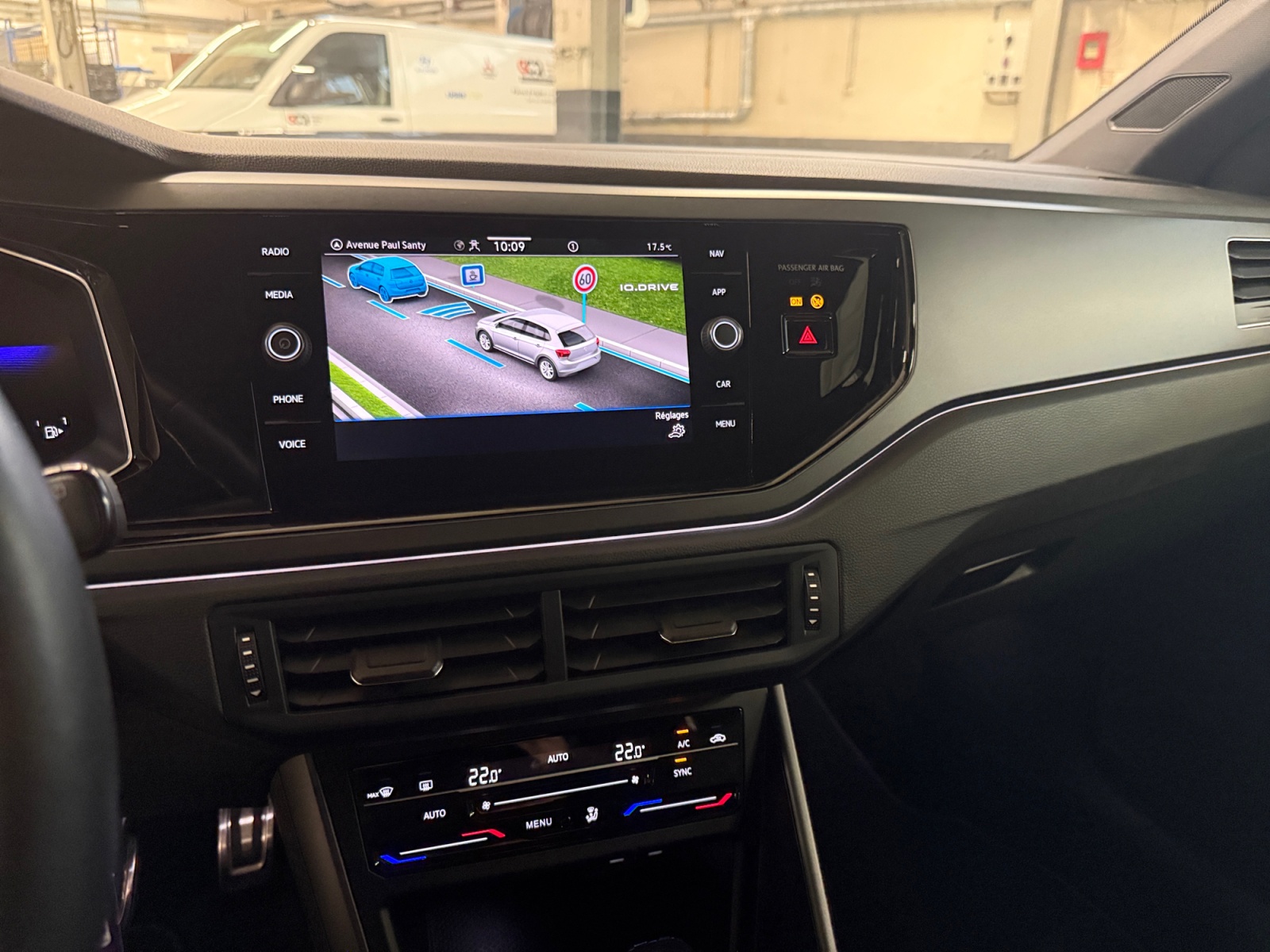 Front Assist: système de surveillance périmétrique contribuant à la prévention des collisions avec fonction de détection des piétons et des cyclistes. Ce système freine automatiquement le véhicule en cas de détection d'obstacle aussi bien en ville que sur autoroute