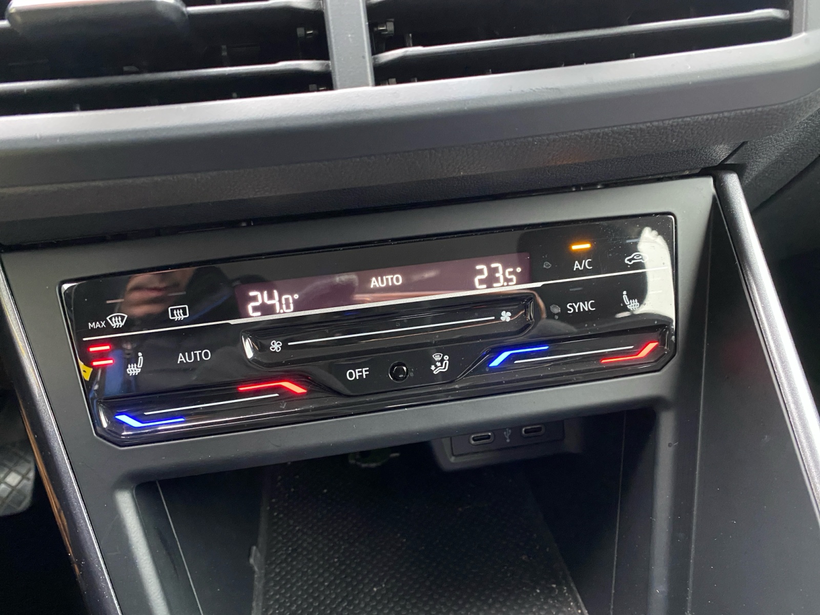 Accoudoir central AV réglable en longueur avec compartiment de rangement et 2 ports USB-C de recharge AR