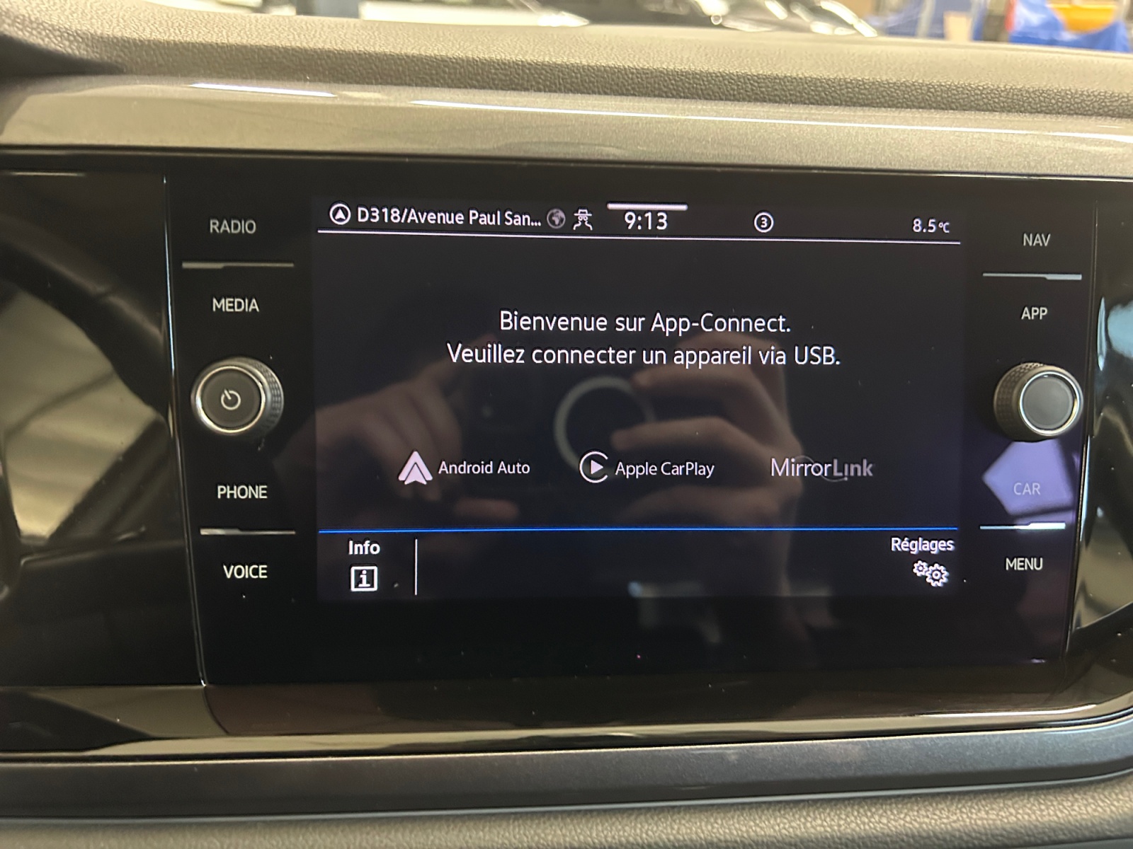 App-Connect sans fil - affichage et contrôle via lécran tactile de la voiture, du contenu, des fonctions et des applications compatibles présents sur le Smartphone (compatibilité avec les systèmes Apple CarPlay, Apple CarPlay sans fil, Android Auto, MirrorLink). Seuls les contenus validés et utilisables en «main libre» peuvent fonctionner.