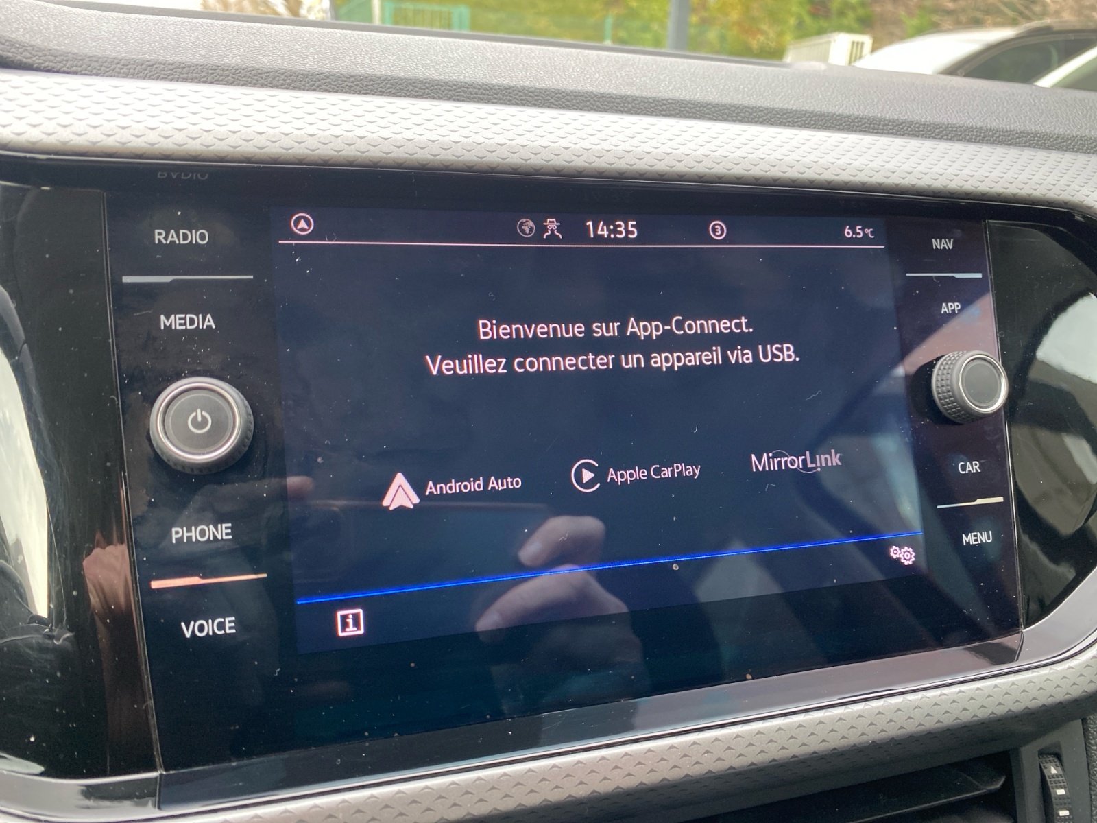 "App-Connect" sans fil affichage et contrôle via lécran tactile du véhicule, du contenu, des fonctions et des applications compatibles présents sur le Smartphone (compatibilité avec les systèmes Apple CarPlay et Android Auto). Fonction sans fil uniquement disponible avec Apple CarPlay. Seuls les contenus validés et utilisables en «main libre» peuvent fonctionner