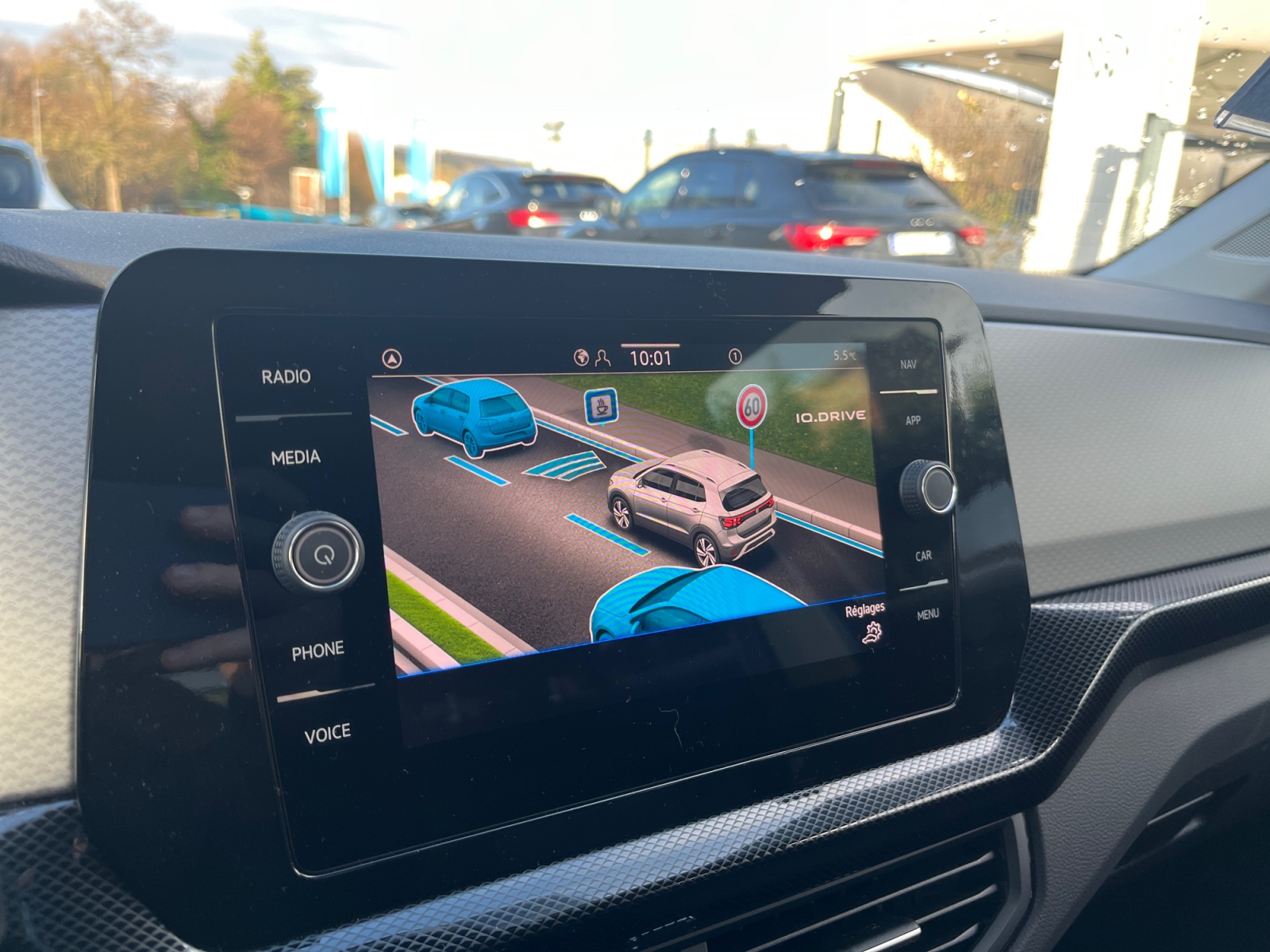 Lane Assist: Assistant de maintien de trajectoire qui corrige, dans la limite du système, le mouvement du volant avant que le véhicule dépasse involontairement la bande de roulement. Système actif à partir de 65 km/h