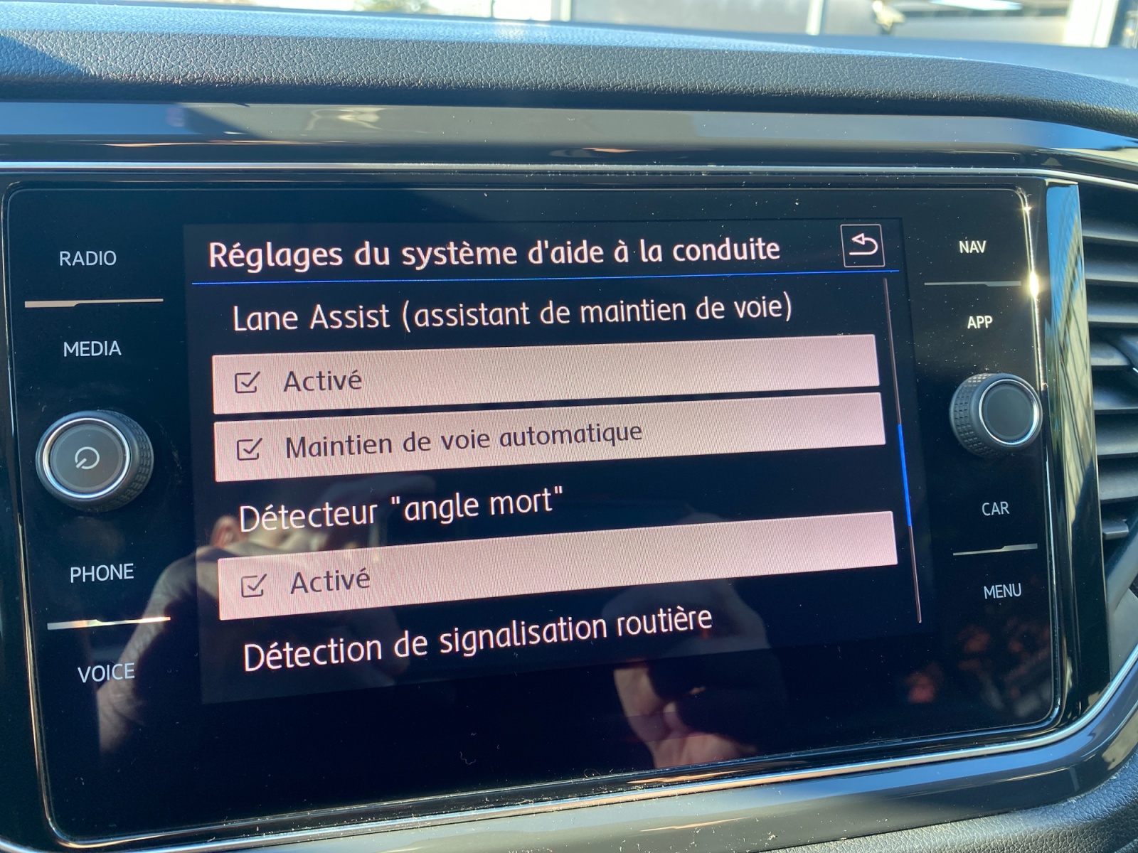 Dynamic Lane Assist: Assistant de maintien de trajectoire qui corrige, dans la limite du système, le mouvement du volant AV que le véhicule dépasse invonlontairement la bande de roulement. Système actif à partir de 65 km/h