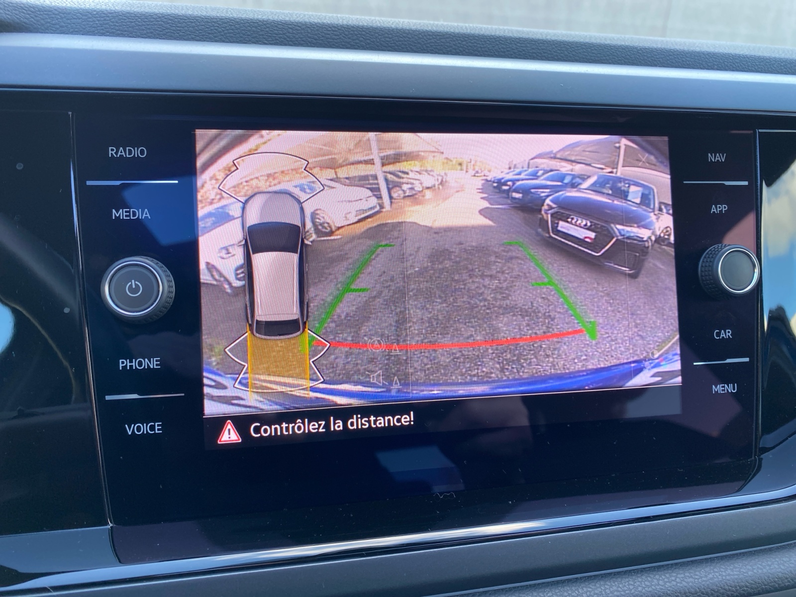 Rear view: - pllus quune caméra de recul, elle affiche des indications visuelles sur lécran central pour faciliter les manoeuvres de recul et de stationnement