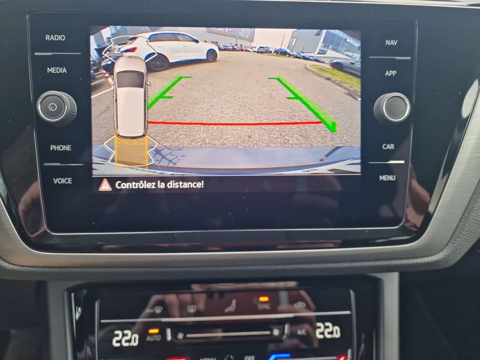 Aide au stationnement AV/AR avec signaux sonores et visualisation de la distance des obstacles sur l'écran